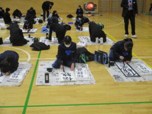各自が練習の成果を出そうと真剣に揮毫しました。