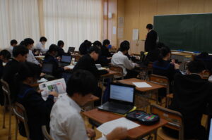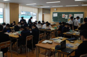 授業風景 黒部市立明峰中学校 | 2026年1月21日 | コメントはまだありません | 1年、2年、3年、たより 本日5限目の授業風景です。 1学年の美術では、紙粘土による立体造形(表現)に取り組んでいます。 2学年は先週に引き続き、キャリア教育で高校調べを行っています。 3学年の数学では、グループで課題に取り組んでいます。 1年、2年、3年、たより
