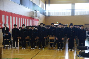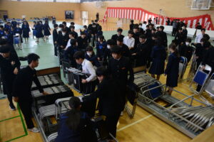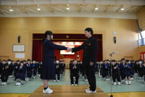 対面式から式の片付け 黒部市立明峰中学校 | 2026年4月9日 | コメントはまだありません | 1年、2年、3年、学校行事、日記、生徒会 入学式にあわせて、生徒会の対面式が行われました。 全校生徒で対面し、代表の握手をしました。 生演奏で式を盛り上げてくれた吹奏楽部ありがとう。 片付けも全校で速やかに行います。全校で作る式は片付けまでで完了です。 1年、2年、3年、学校行事、日記、生徒会